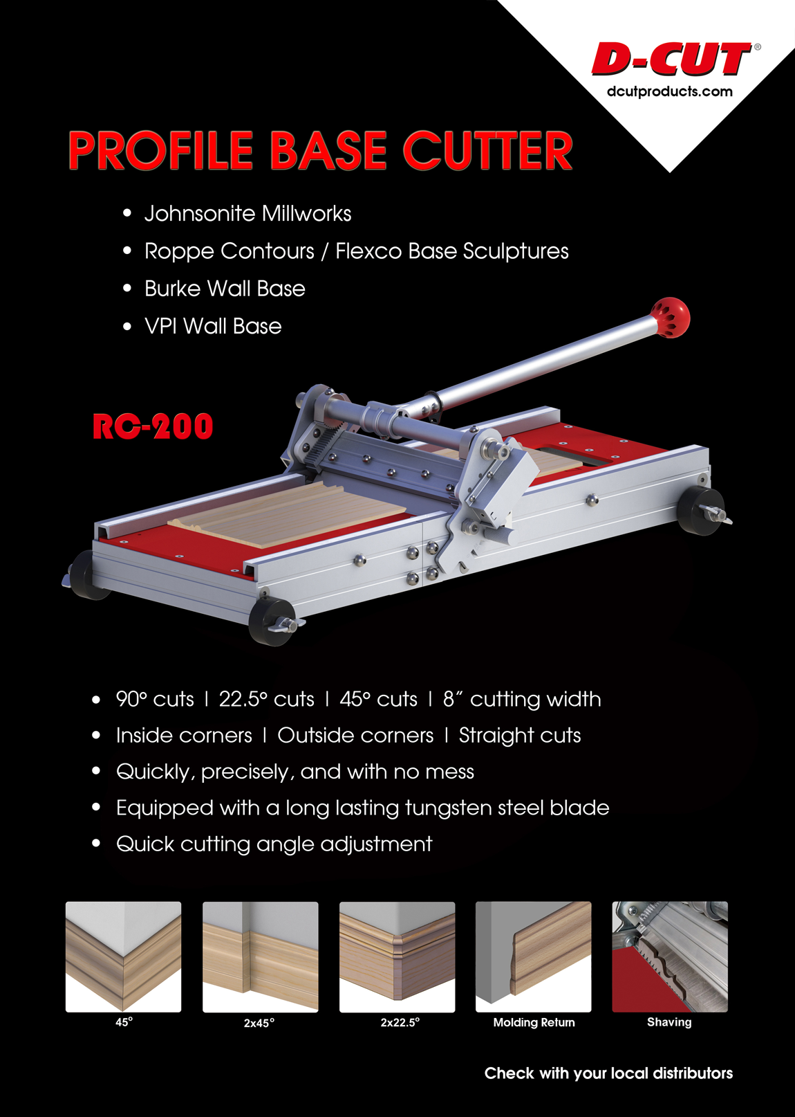 Cutting Application: Designed for Profile Rubber Wall-Base: Johnsonite Millworks, Roppe Contours, Flexco Base Sculptures, Burke Wall Base, VPI Wall Base